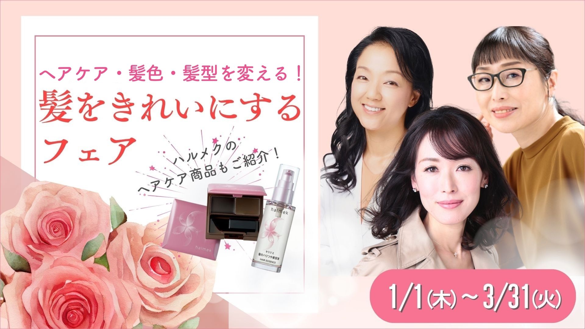 大人女性の髪のお悩みはハルメクにお任せください! ハリ・ツヤのある元気な髪のお手入れ法、自分に本当に似合う髪型・髪色探しをお手伝いします。3人の専門家による「髪をきれいにする」お話とハルメクのヘアケア商品で、楽しみながらきれいな髪をつくりましょう!