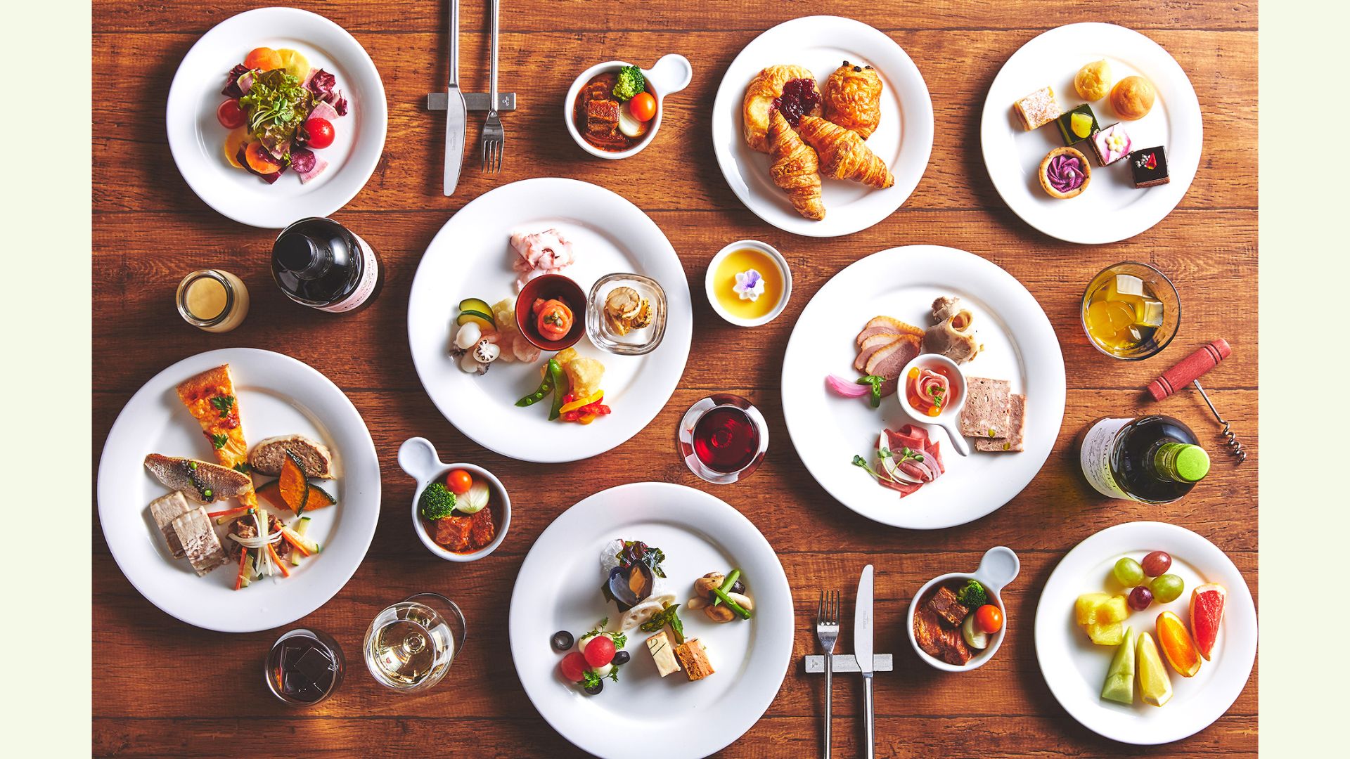 集合場所となる「都ホテル京都八条」のレストラン「ル・プレジール」で約60種類のメニューから選べるビュッフェのランチを味わいます。