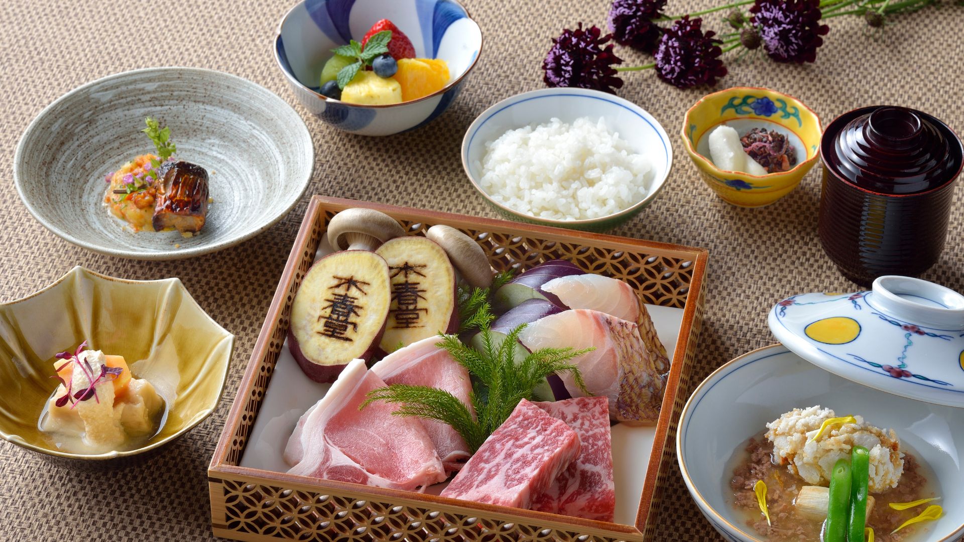 ホテル椿山荘東京「木春堂」の庭の緑に囲まれた空間で「石焼料理」のコースを味わっていただきます。