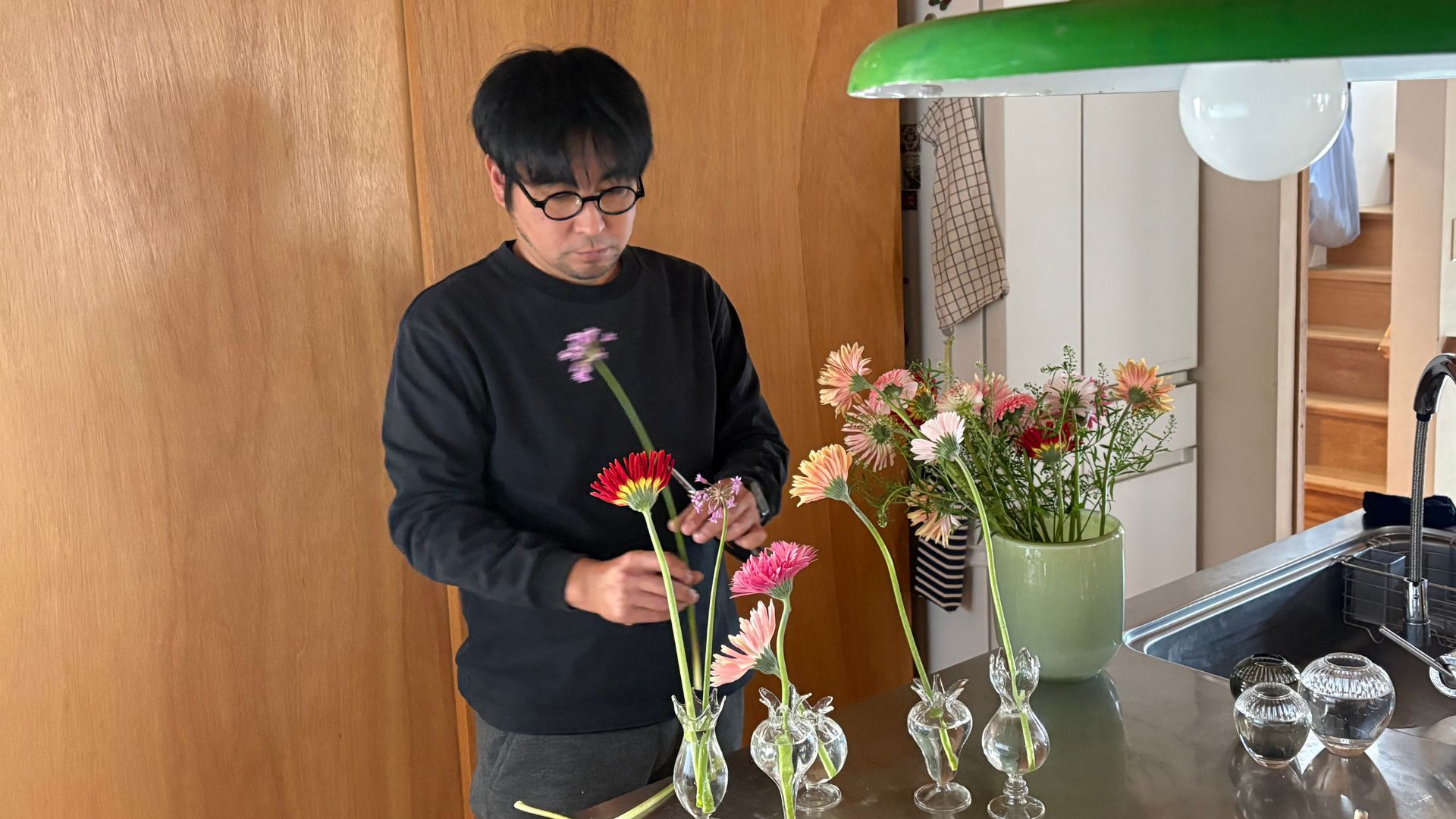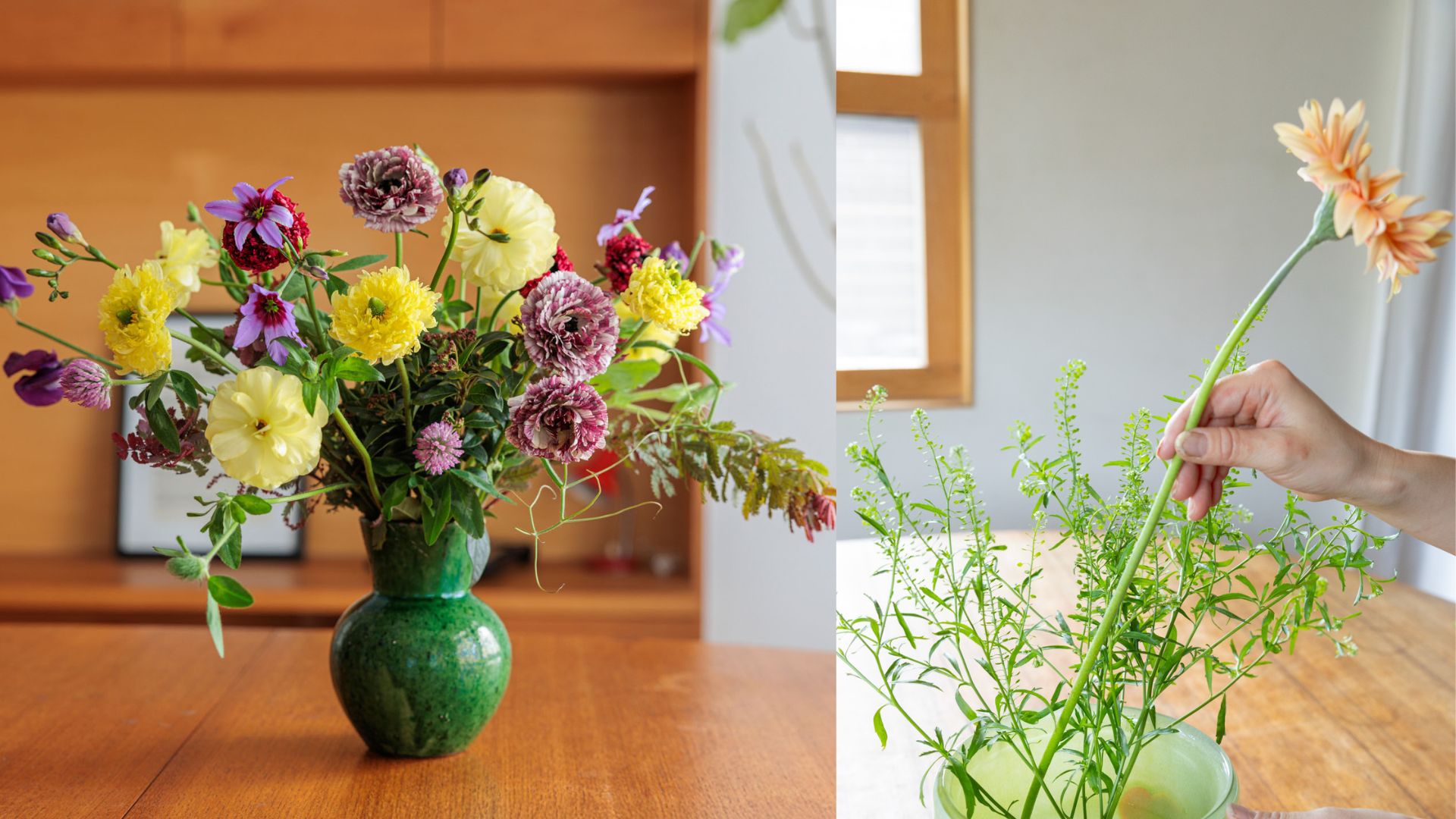 雑誌ハルメクの人気連載「暮らしに花を」で毎回花の新しい魅力を届けてくれるフラワーデザイナーの岡寛之さんを講師に迎え、花瓶での生け方を教わるフラワーレッスンです。