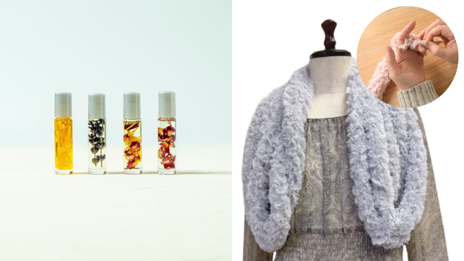 毎年話題のワークショップは250種類以上。ハルメクなら、初めての方が楽しめる手軽で大人気の「好きな香りのアロマオイル作り」と「太い毛糸で指編みマフラー」の2つを体験できます。