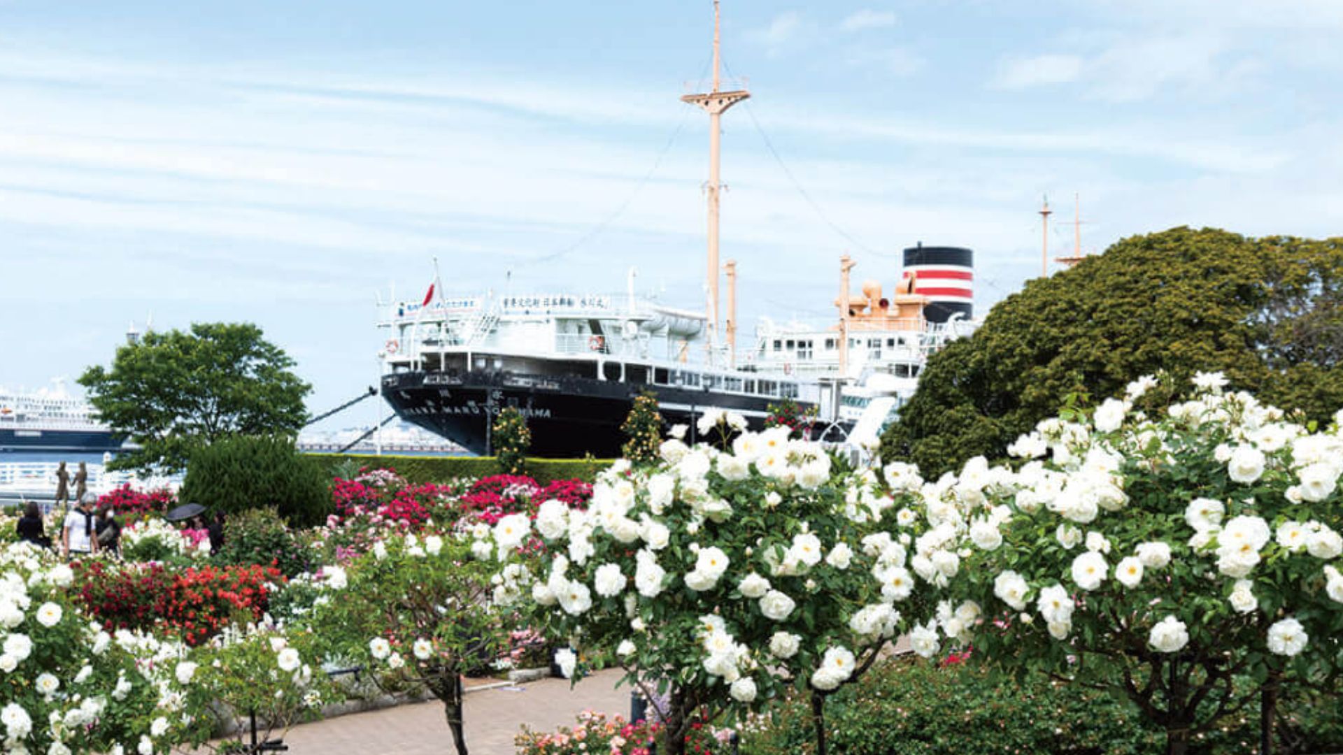 山下公園では氷川丸や芳醇な香りに包まれるバラ園を見学し、マリンタワーにもご案内(歩行距離約1㎞)。