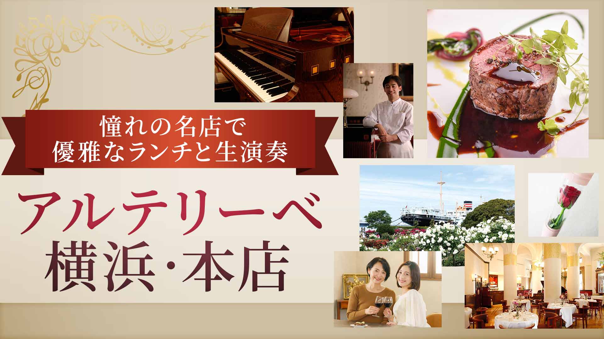 「アルテリーベ横浜本店」は、1929年建立の歴史的建築物内にあるフレンチスタイルの欧州料理の老舗。ピアノの生演奏が楽しめ、フランス生まれのシェフ日比生猛(ひびお・たけし)さんが腕をふるいます。