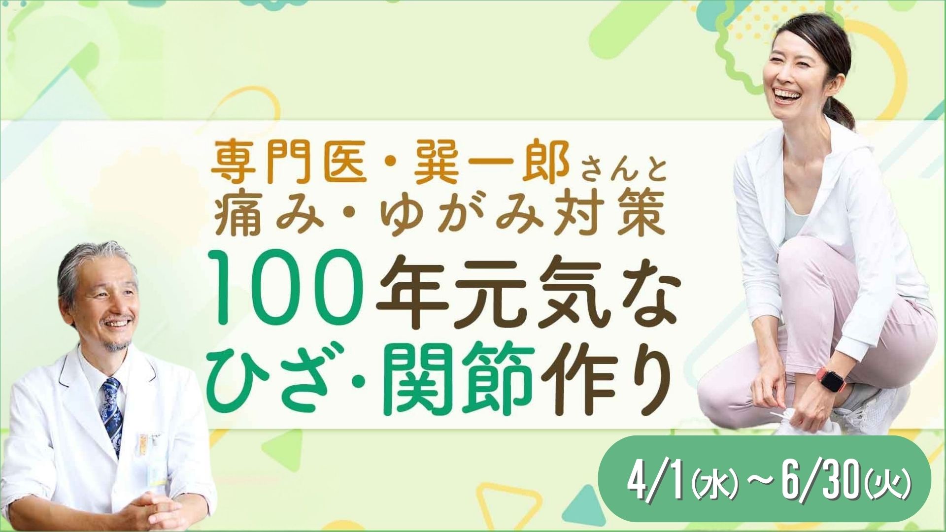 治療の信条は、「歩き方を変えたりすることで、なるべく保存療法を行う」といいます。巽さんからセルフケアを習い、最新のひざ治療を教わって、元気な「100年ひざ」を作る講座です。