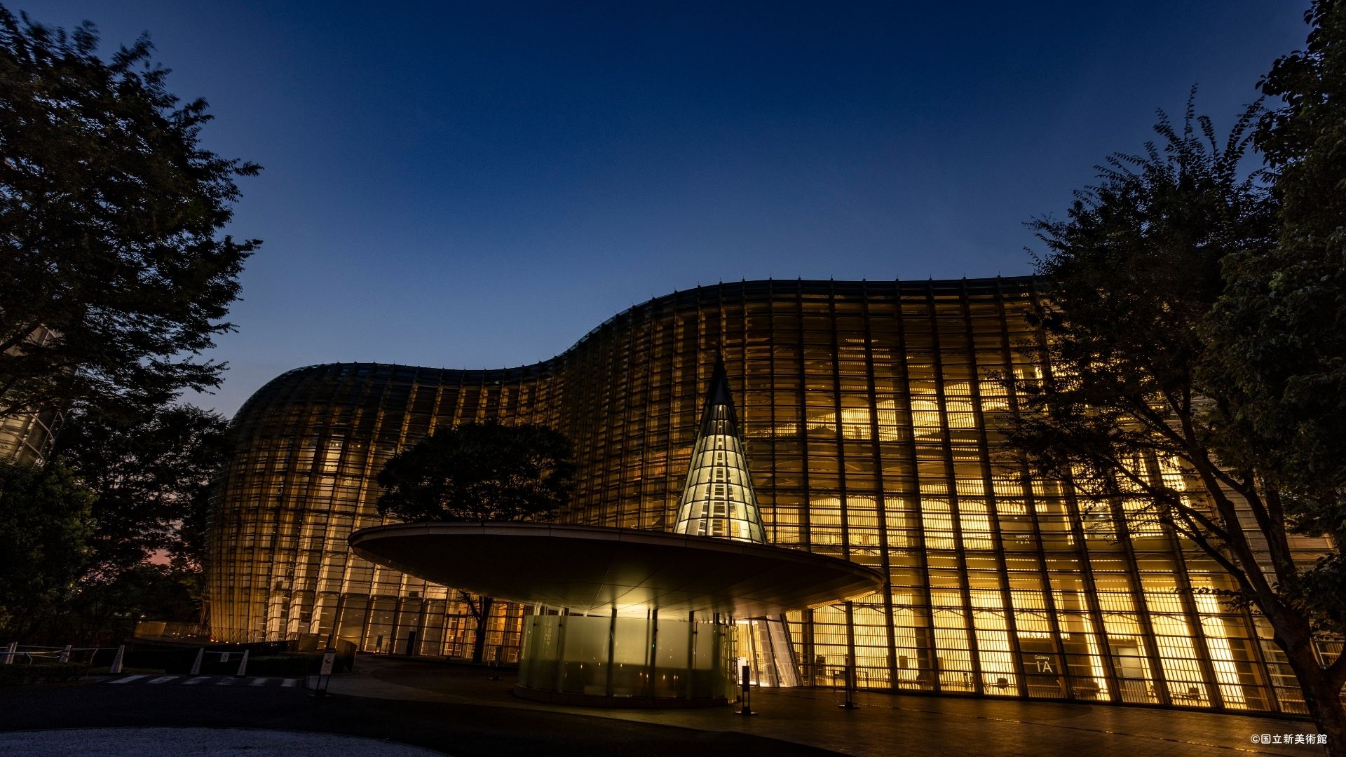 波打つガラスの「カーテンウォール」と国内最大級の展示面積を誇る「国立新美術館」は夕暮れどきこそ最も美しく輝きます。この期間は「生誕100年 森英恵 ヴァイタル・タイプ」が7月6日(月)まで開催中。西洋の服飾技術に日本の美意識を融合させ、世界から高い評価を集めた作品が一堂に会しました。お食事はアトリウムにそびえ立つ巨大な「逆円錐(コーン)」の上、「ブラッスリー ポール・ボキューズミュゼ」のフルコースをどうぞ。