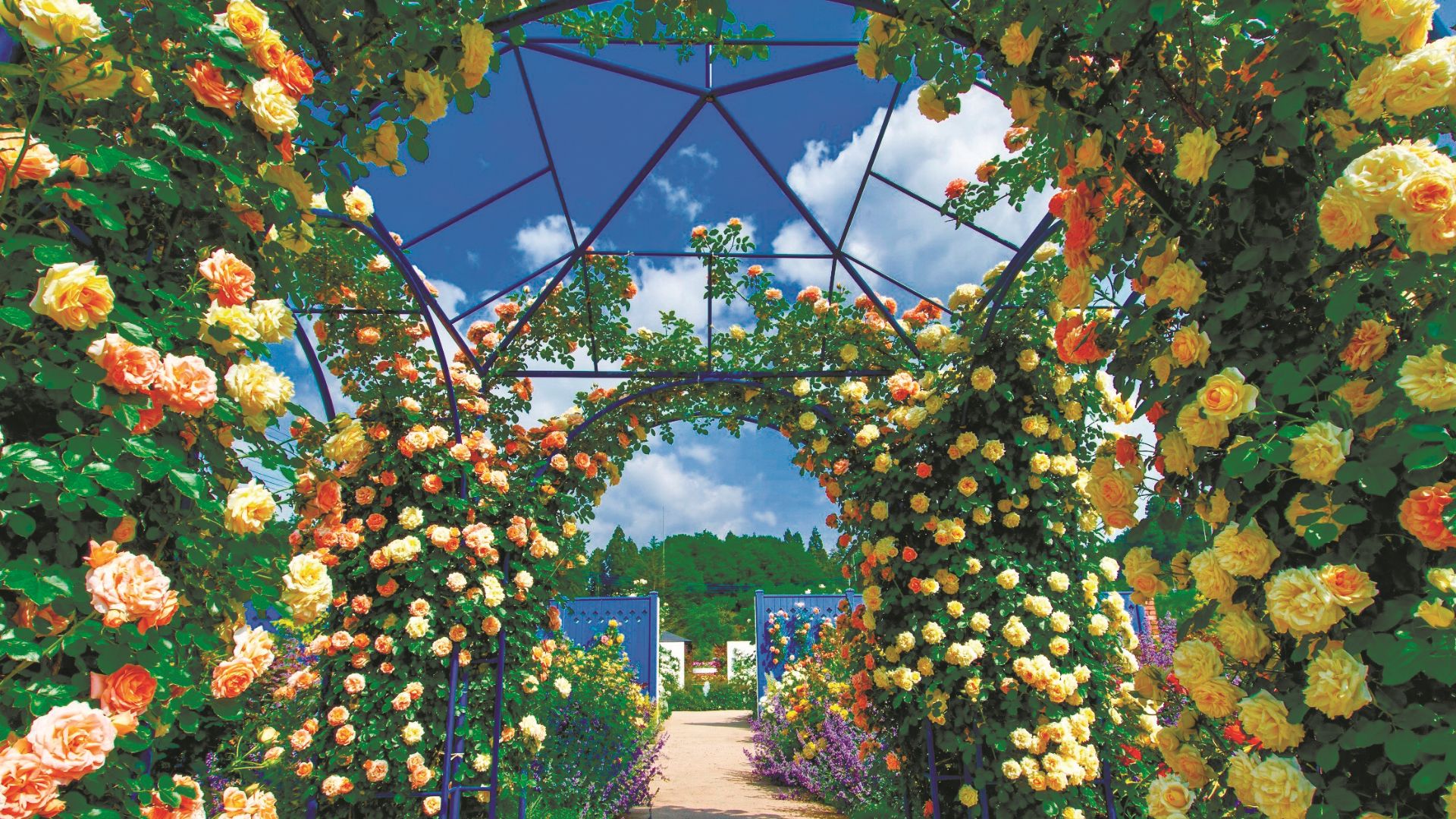 つるバラのアーチが見事な本格的な英国式庭園で6月はバラのシーズン。バラクライングリッシュガーデンのケイ山田さんが監修。