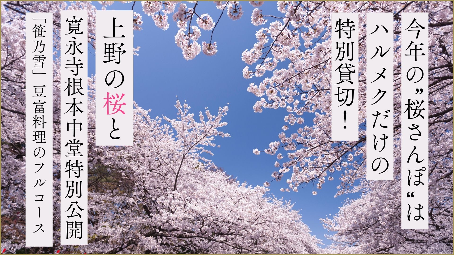 上野の桜と寛永寺根本中堂特別公開「笹乃雪」豆富料理のフルコース【3/27(金)】