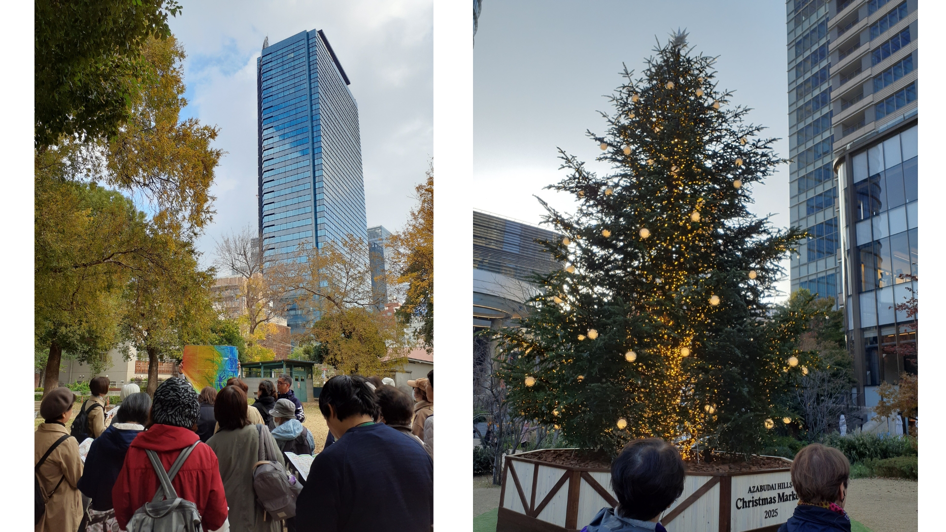 午後は話題の新スポット麻布台ヒルズへ。さらに近隣のアークヒルズ周辺まで足を伸ばし、高層ビルの間にひっそりと佇む“秘密の庭園”も散策。都心とは思えない緑の豊かさに、驚きの声が上がります。