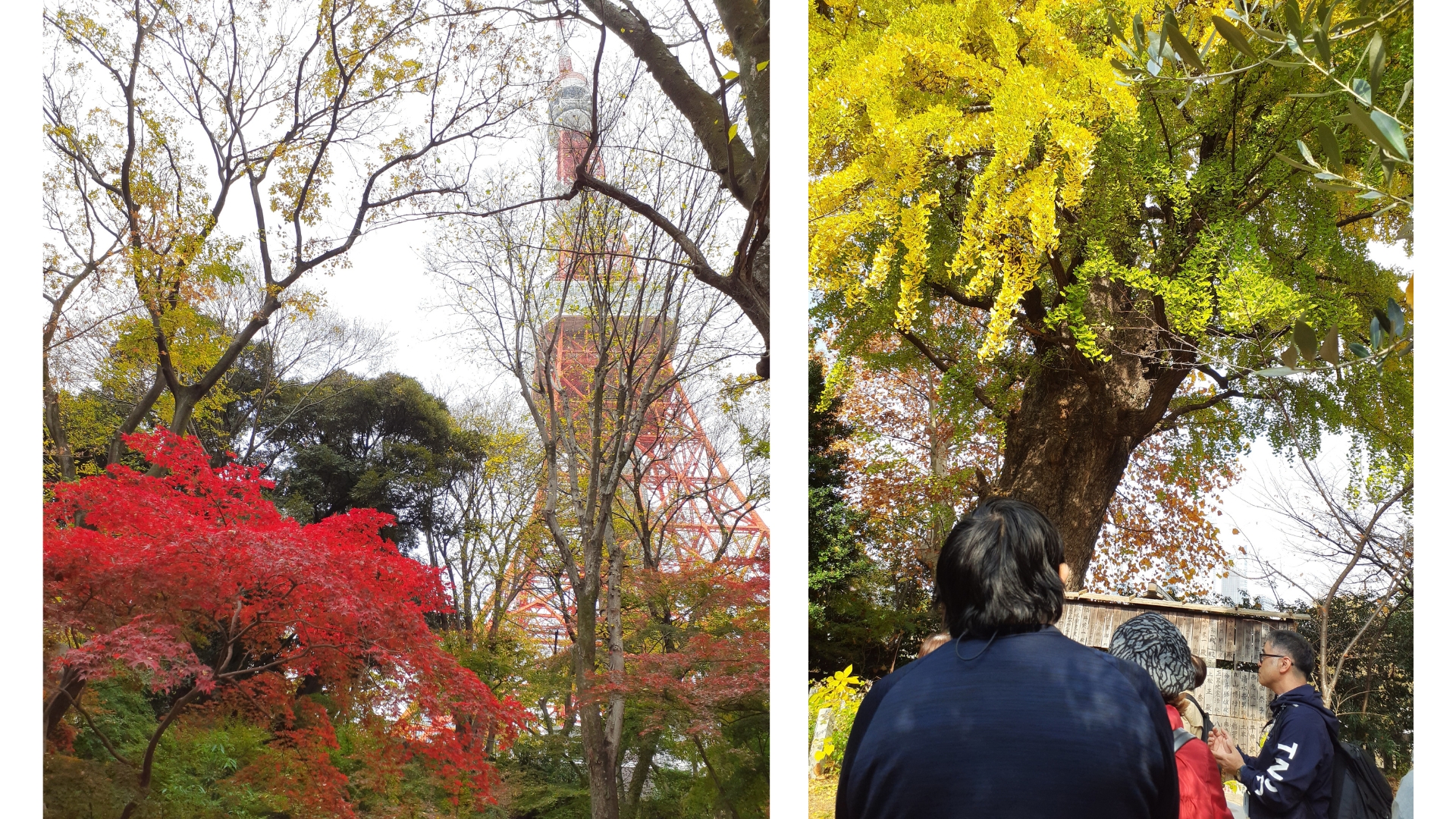 紅葉も黄葉も美しい、晩秋の芝公園から、今回の草花散歩はスタートしました。