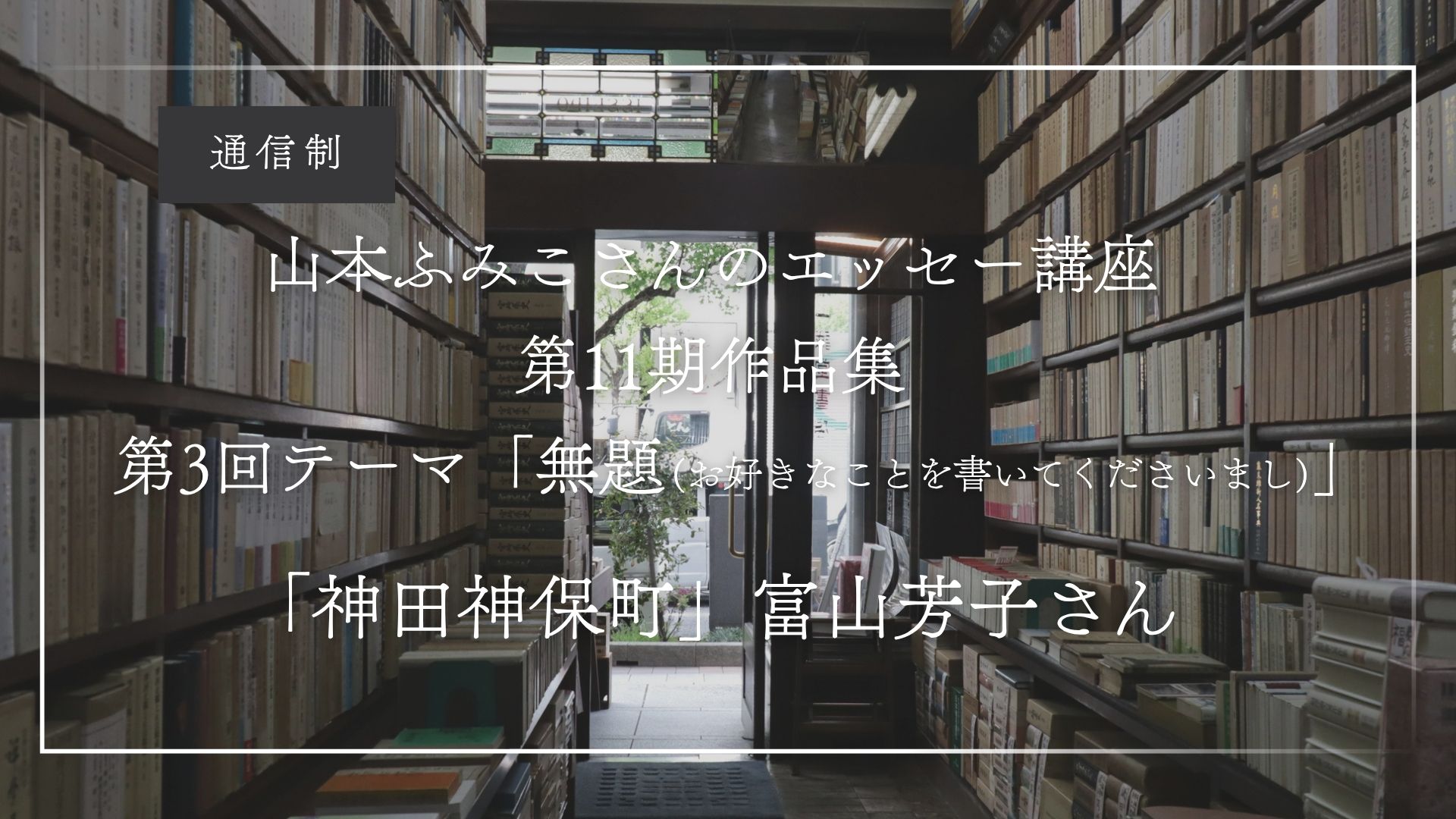第11期3回目のテーマは「無題(ご自由に書いてくださいまし)」。富山芳子さんの作品「神田神保町」と山本さんの講評です。